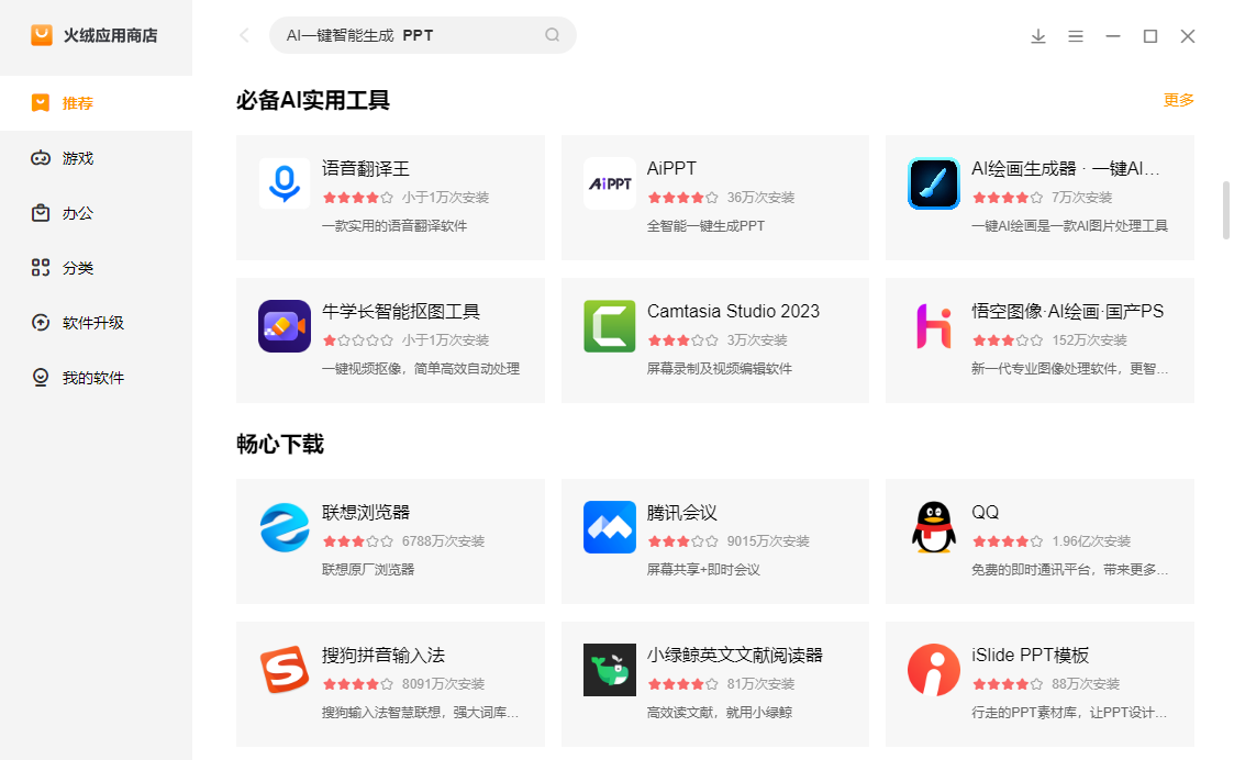 火绒应用商店是一款高效便捷,一站式管理电脑应用的软件,火绒应用商店为广大用户提供海量的软件、游戏下载,同时提供软件的及时升级与管理,省心易用,支持Windows 7及以上操作系统。