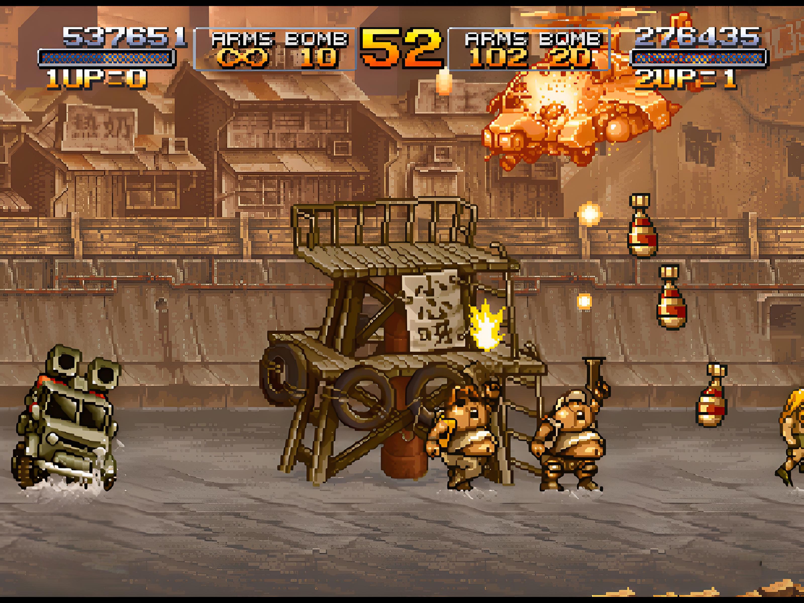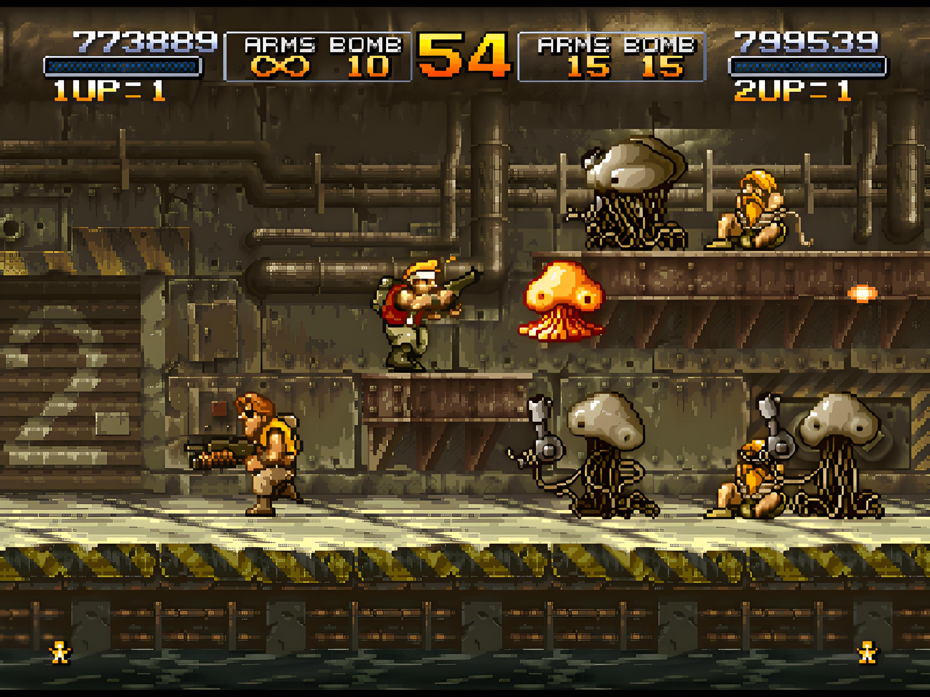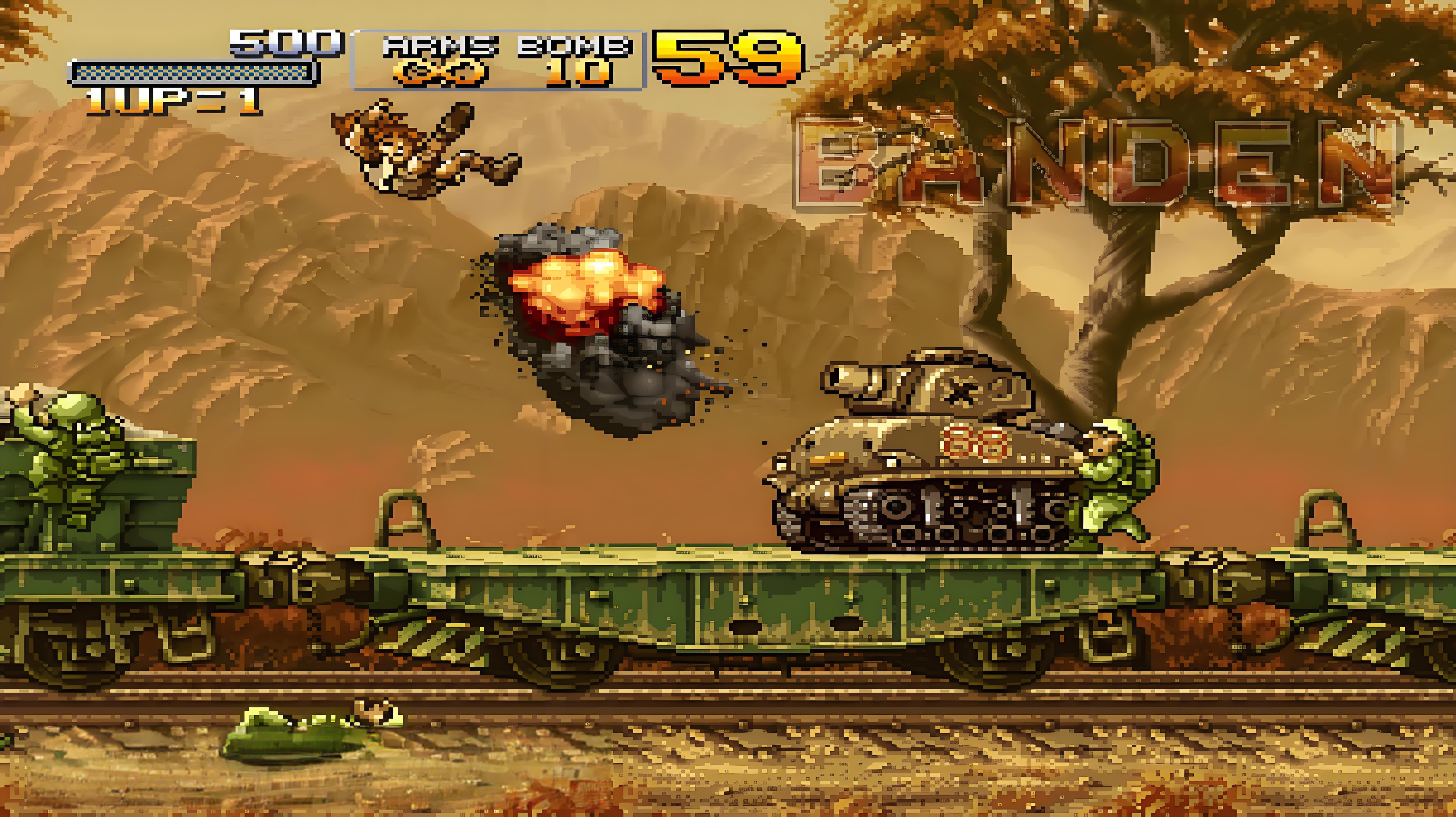 玩家在游戏中扮演不同的角色,在横版的地图中不断向右探索,使用武器击败敌人,部分地图中还有特殊的载具可以驾驶。