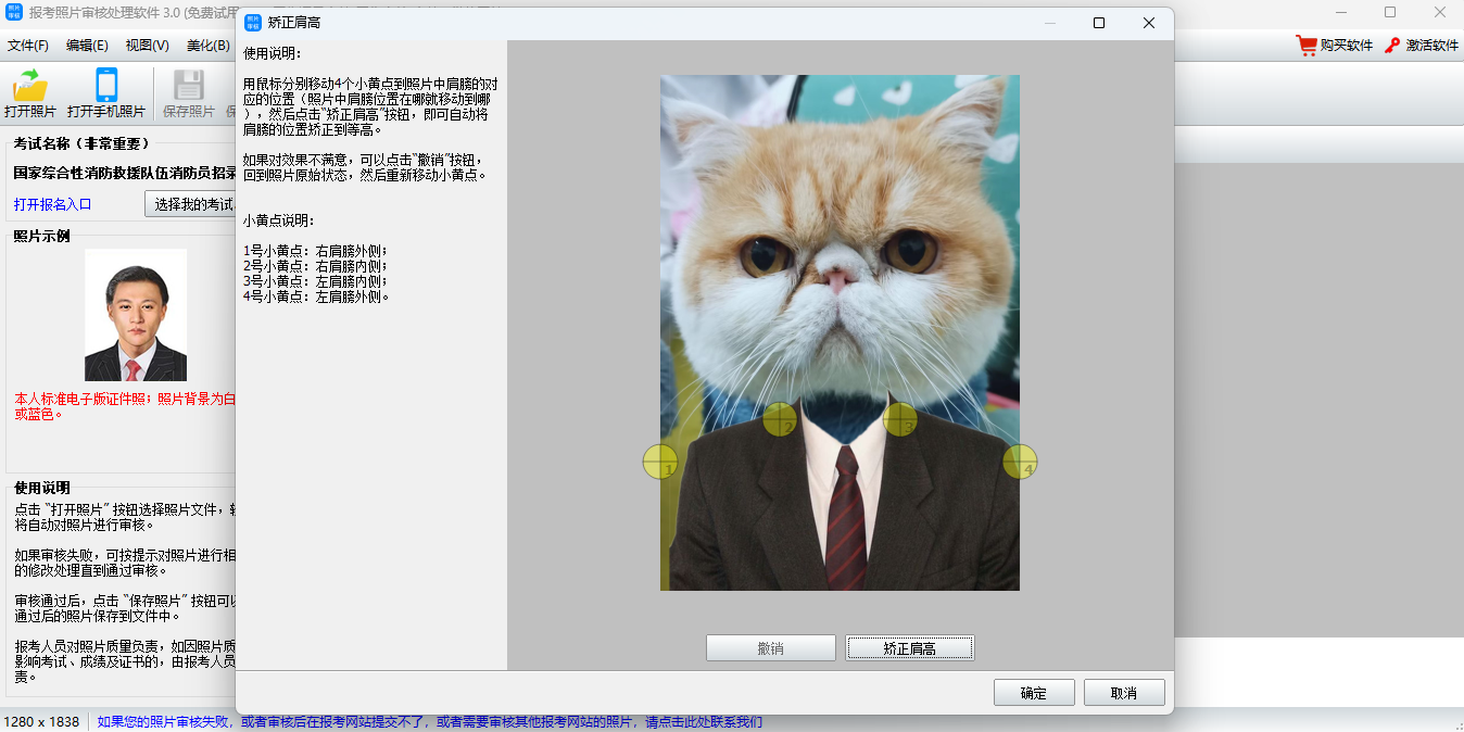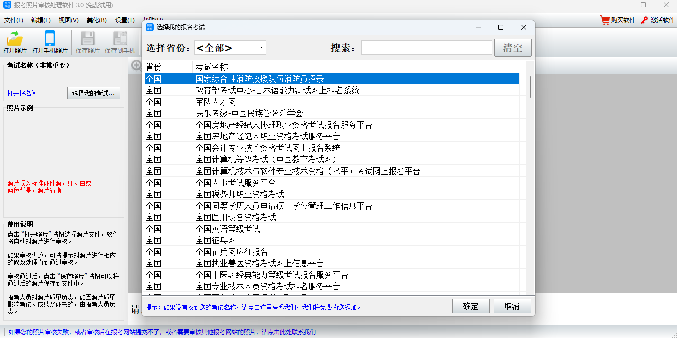 报考照片审核处理软件,支持多个报名网站的照片审核处理、支持快速处理照片为标准格式证件照、支持照片裁剪、更换照片背景、一键美化、橡皮擦功能、消除红眼、更换服装、调整肩高等功能。