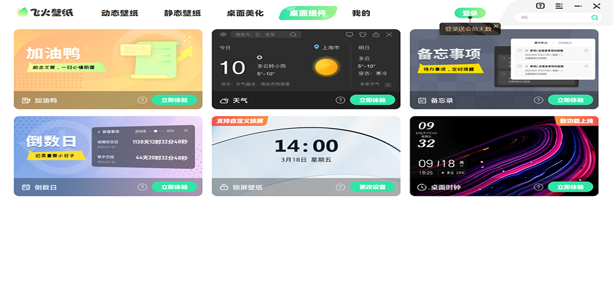 飞火动态壁纸汇集海量壁纸资源,众多超清无水印动态壁纸让您自由选择,优质静态壁纸免费下载。智能提醒让你晴雨先知,备忘事项提升办公效率,各色桌面美化功能及优质壁纸一键美化你的桌面,让你…