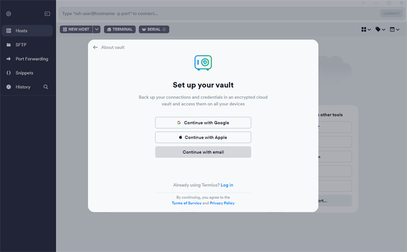 Termius最新版是一款功能相当不错的跨平台SSH工具,Termius最新版拥有直观的操作界面和丰富的功能,让你轻松管理您的Raspberry Pi,Linux机器或UNIX服务…