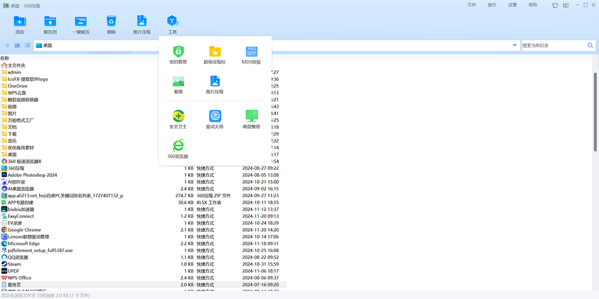 360压缩是360推出的免费解压缩软件,360压缩快速轻巧、兼容性好、永久免费。360压缩内置云安全引擎,可以检测木马,更安全。